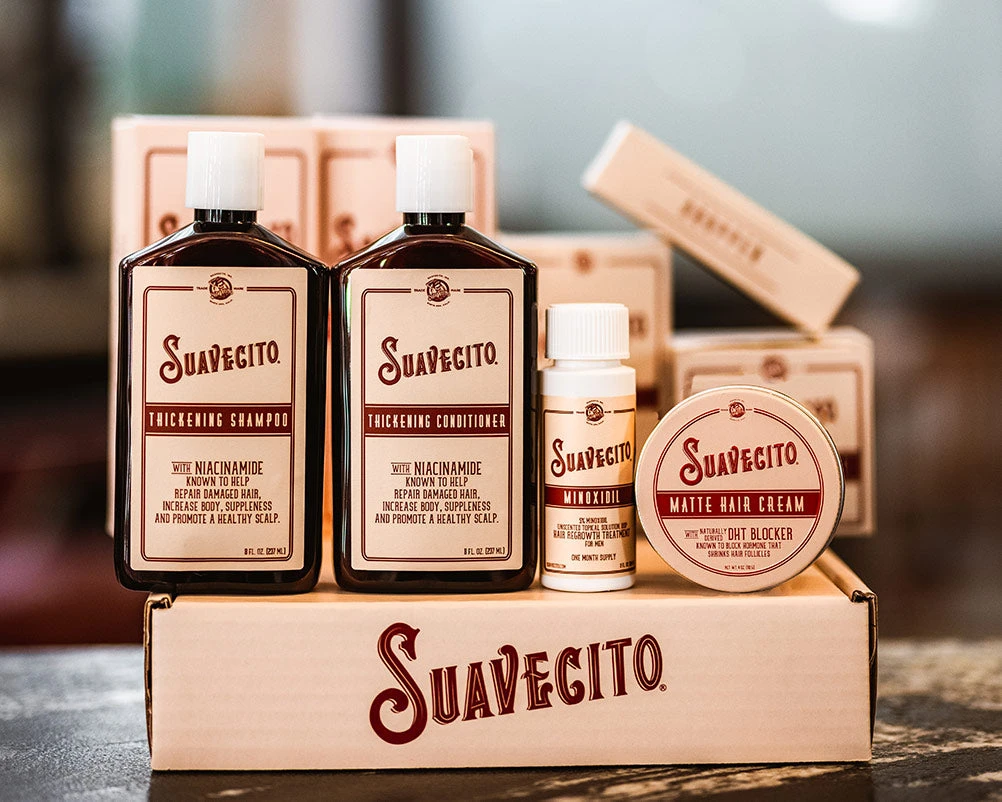 Both our Thickening Shampoo and Conditioner contain niacinamide as well as other ingredients that are popular in hair loss shampoos for their hair growth benefits.
